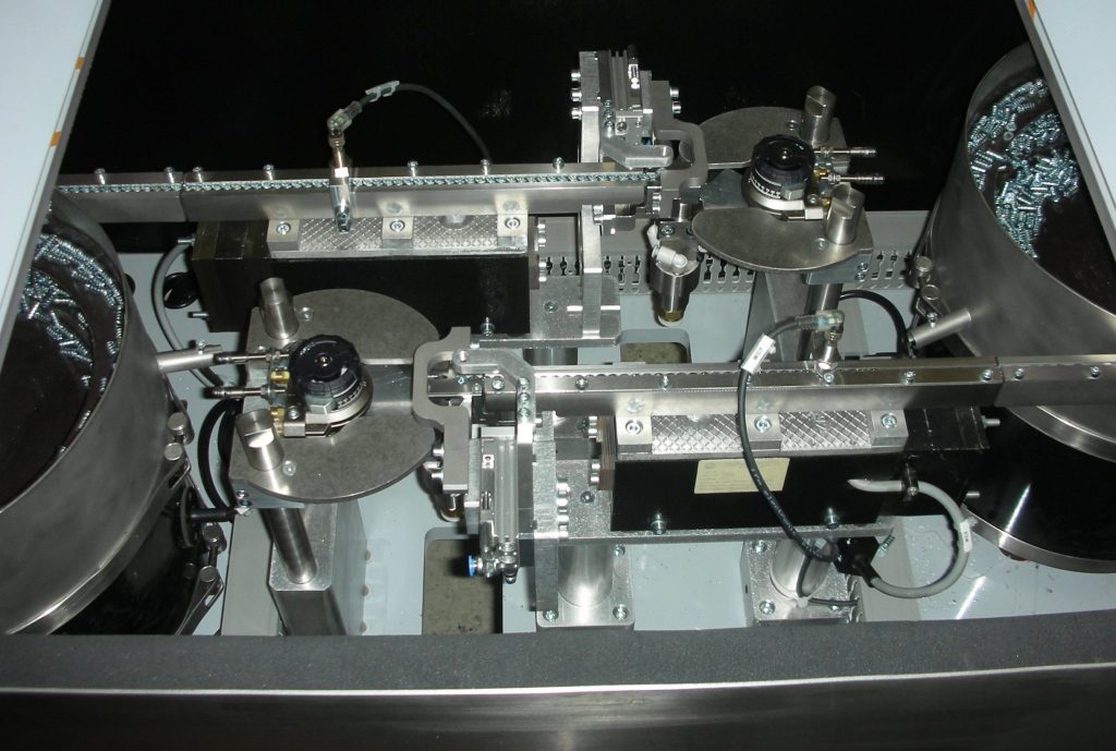 Vibrationsmataren skakar fram och orienterar olika detaljer till ett önskat läge. Vibrationsmataren fylles med lämplig mängd av detaljerna som önskas orienteras. Vibrationsmataren kommer sedan med sina cirkulära vibrationer att skaka fram detaljerna på sina banor och igenom eventuella fällor, för att bara släppa igenom detaljer på det vis man vill ha dem för fortsatt transport till ex. robothämtläge, Pick and Place enhet, m. m. Vibrationsmatarens funktion kan i enskilda fall vara beroende på mängden detaljer som ligger i den. I dessa fall är det att rekommendera att vibrationsmataren påfylles med hjälp av en silo. På så vis reduceras mängden detaljer i vibrationsmataren till det optimala flödet. Vibrationsmatarna tillverkas i storlekarna ca Ø50 mm – Ø3000 mm med valfri banbredd, en eller flera utgångar, elektrisk eller pneumatisk vibrator, med eller moturs matning för lägesorientering, sortering, separering eller portionering till efterföljande arbetsoperationer. Ni kan med andra ord komma till oss med era detaljer och tala om vad ni vill göra med dem och vilken kapacitet ni strävar efter. Vi har det som behövs i utrustning -silos -ljuddämpningshuvar -slussar -transportörer -elevatormatare och reservdelar. Vi renoverar, bygger om och köper även begagnade matare, samtliga fabrikat. Alltid drygt 300 st begagnade enheter i lager. Egna erfarna matarbyggare av hög internationell klass. Vi har samarbete med Europas ledande tillverkare i branschen och vi ombesörjer reservdelar till de flesta fabrikat som vi kan specialanpassa efter kundens behov. YOU NAME IT – WE DO IT